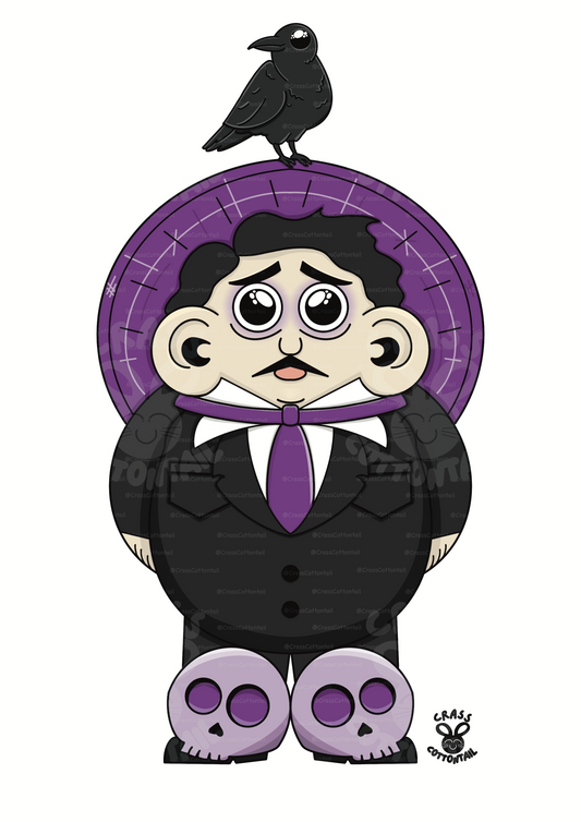 Edgar Allan Poe x Japanese Tanuki 3"x2" Vinyl Sticker